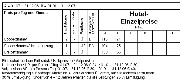 Bad oder Dusche, WC / Safe/ Zentralheizung / Zimmer mit Salon-Suite / Internetanschluss / Garten / Terrasse /Minibar / Fön / Telefon / TV / Behindertengerechtes WC