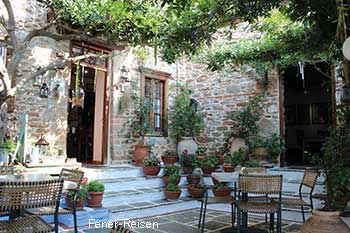 Der kleine traditionelle Ort ist geprägt durch enge Steingassen und dem reissenden Gebirgsbach, der den Ort durchquert. Tavernen haben sich an dem Ufer des Baches unter riesigen Bäumen angesiedelt und laden zu einem romantischen Abendessen ein! Unsere Unterkunft dort bewohnt eines der schönen alten Herrenhäuser im Ort. Sehr traditionell mit vielen lokalen Antiquitäten ausgestattet, bietet es Komfort im familiären Rahmen. Jedes der unterschiedlich großen Zimmer ist anders eingerichtet. Das Frühstück liebevoll angerichtet und mit lokalen Zutaten kann im Sommer auf der traumhaften Terrasse eingenommen werden.