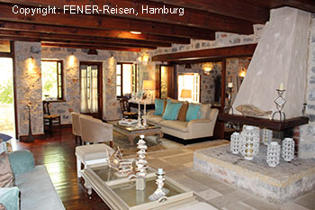 Zwei Beispiele für unsere Ambiente-Domizile im Gebiet des Mani. Ein historisches Mani-Anwesen wurde liebevoll zu einer Hotelunterkunft umgebaut. Direkt am Meer gelegen, wurden alle wesentlichen Bauelemente der alten Gebäude aus dem Jahre 1870 erhalten. Errichtet aus rohem Stein und mit viel Holz verbreiten die Räume eine ganz besondere Atmosphäre.