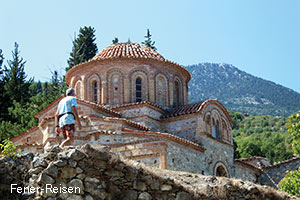 Die Mistra-Klöster, für uns ein Highlight der griechischen Sehenswürdigkeiten. Der Grund: Das gesamte Gelände ist riesig, sodass sich die Besucherströme immer gut verteilen und Sie sehr häufig den Eindruck haben, alles das für sich fast ganz alleine zu haben.