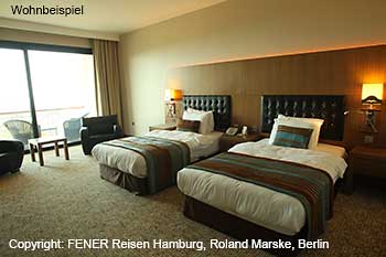 Die Standardzimmer haben zwischen 31 und 38qm und bieten kostenloses WIFI, 32‘‘ LCD HD Bildschirme mit SAT-TV, Minibar, Safe, Badewanne und Balkone, teilweise französische Balkone. Darüber hinaus stehen Zimmer in den Kategorien Deluxezimmer, Standard- und Delight Elitezimmern sowie 67qm große Juniorsuiten zur Verfügung.