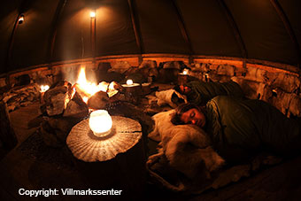 Den Rest des Abends können Sie draußen am Lagerfeuer verbringen. Da unser Zentrum abseits von Tromsø und den Lichtern der Stadt liegt, ist der Himmel über uns dunkel und sehr gut geeignet, um Auroras zu beobachten. Wenn Sie müde werden, erwartet Sie unser mit weichen Rentierfellen und hochwertiger Campingausrüstung ausgestattetes Lavvu-Zelt. Wickeln Sie sich in einen warmen Schlafsack und genießen Sie die Nacht.