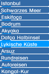 | Istanbul | Schwarzes Meer | Eskifoca | Bodrum | Akyaka | Datca-Halbinsel | Arsuz | Lykische Küste | Autotouren | Kangal-Kur |